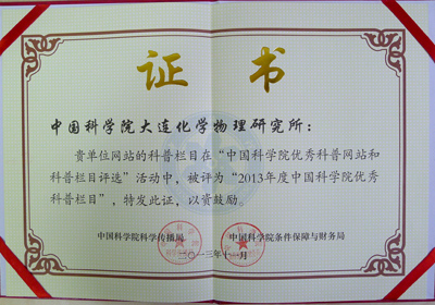 此外,本次会议还向获得2013年中科院优秀科普网站称号的10个单位和优秀科普栏目称号的10个单位颁发了获奖证书。我所科普园地网站入选十佳,荣获优秀科普栏目奖。(文/李宏波 图/李富岭、李宏波)