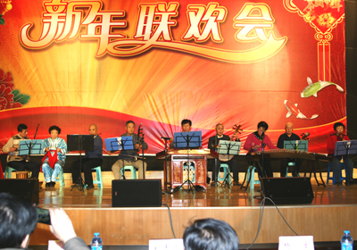 开场舞《好运来》拉开了联欢会的序幕,火红的绸带热情舞动,舞出了老同志热爱生活的昂扬激情;老同志自创的三句半《抒情怀》、《小日本鬼子》,吼出了老同志的爱与憎的炙热情怀;男生小合唱《故乡的小路》、女生四重唱《今天是你的生日》演绎了老同志的悠悠深情;女生独唱《月光泪》、《蓝色的蒙古高原》和男女声弹唱《白毛女》,展示了老同志美妙的嗓音;京剧《智斗》、《霸王别姬》、《梨花颂》,给听众送来了国粹经典别样的听觉享受;民乐合奏《春江花月夜》、《金蛇狂舞》、葫芦丝齐奏《高山顶上修条河》、《山清水秀好风光》,令听众沉浸在跳动的音符之中;藏族舞蹈《听一听》舞出了藏族人民的虔诚与喜乐;配乐诗朗诵《在太空,你谱写着惊天动地的诗篇—献给钱学森》被三对老夫妻演绎得淋漓尽致,六位老人款款地道出了科研人对钱学森的万般崇敬;联欢会在老年大学合唱团的《远飞的大雁》和《七律·到韶山》优美的旋律中落下帷幕。