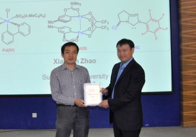 6月13日,我所优秀校友系列报告第三十九讲在催化楼一楼报告厅举行。我所优秀毕业生——中山大学化学与化学工程学院赵晓丹教授应邀作了题为“C-H Bond Functionalization and N-Heterocyclic Carbene-Catalyzed Cycloadditions: Atom Economical Strategies to Construct Valuable Molecule”的学术报告。余正坤研究员主持报告会,并为赵晓丹颁发了优秀校友报告纪念奖牌,50余名师生听取了报告。