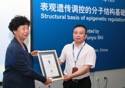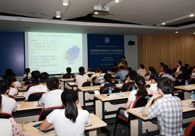 报告中,施蕴渝首先介绍了结构生物研究生物大分子三维结构及分子间相互作用的背景知识;然后,深入浅出地讲解了她的研究团队在结构生物学研究表观遗传调控的分子机理中的相关工作,如Stc1偶联RNAi与染色质修饰、组蛋白乙酰转移酶MOZ系列PHD结构域的结构与组蛋白的分子识别及其功能意义等;最后,还特别强调了21世纪生命科学与交叉学科人才培养的重要性。