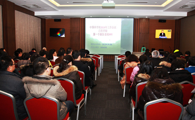 1月9日上午,中科院2014年度工作会议在北京开幕,会议采取全院视频会的形式,我所在所的所领导、研究组长、咨询委委员、管理及支撑部门工作人员在能源基础楼会议室参加了视频会议。视频会议由副院长施尔畏主持。