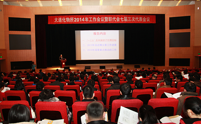 所长张涛代表所班子做了题为《追求卓越、推进“一三五”实施,率先建成世界一流研究所》的报告,介绍了“一三五”规划及本届班子任期目标;总结了2013年及近期主要工作进展;提出了2014年需要重点推动的工作。