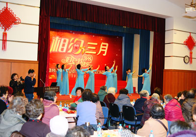 火热的开场舞《好运来》为联欢活动剪了头彩,独唱《爱在天地间》、《草原夜色美》传递了大爱与唯美,舞蹈《我在春天等你》用动人舞姿牵引着观众沉醉在春天的味道中;在职女职工献上舞蹈《茉莉花》,表达了她们对老同志的关爱。活动中,穿插了动作类游戏《击鼓传花》,获奖的14位老同志到台上即兴集体演唱了《幸福拍手歌》,情感类游戏《时间都去哪儿了》,展示了16位女同志20至30岁年轻时的黑白老照片,大家在《猜猜她是谁》中,感受年华易去,珍惜当下生活。最后,在民乐队的伴奏下,50位老同志朗诵了《老有老的骄傲》,表演歌伴舞《儿行千里》,把联欢会推向高潮,联欢会在全场合唱《夕阳红》中结束。