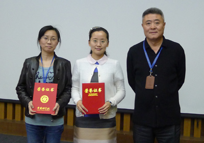 在培训之前,信息中心主任李富岭首先向获得2013年中科院ARP明星用户和优秀用户称号的人事处张晓洁和财务处王怡颁发了证书。