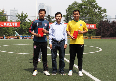 经过精彩的小组赛和更加激烈的淘汰赛,最终十八室一室联队和十一室队凭借默契配合,力战群英,闯入决赛,为所有球迷奉献了一场饕餮盛宴。场上球员活力四射,斗志昂扬,场下球迷欢呼沸腾,焦灼紧张。经过六十分钟的激烈对抗,十八室一室联队以2:0独占鳌头,荣获金杯。十一室队惜败获得亚军。本届杯赛评出最佳裁判张顺,最佳边裁霍红臣、宋明;九室三室联队获得公平竞赛奖;机关队李宏波以9粒进球荣膺最佳射手,十八室一室联队盛坤以其极佳的表现成为最佳球员。