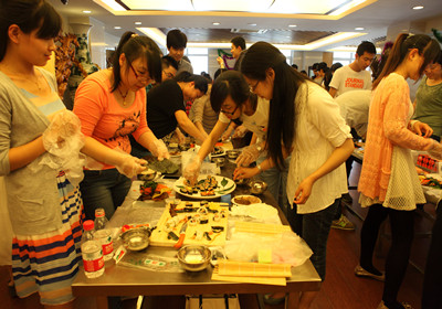 5月30日下午,我所在新研究生大厦2楼举办第六届端午文化节。活动内容包括包粽子、寿司制作以及蔬菜水果拼盘制作。由所内导师、学生和职工组成的14支队伍参加了活动。