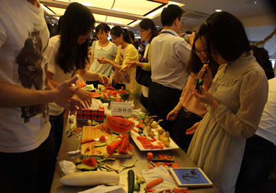 在蔬菜水果拼盘制作环节,各代表队充分利用给定的蔬菜水果,精雕细琢,创意迭出,把拼盘制作得五彩斑斓,为大家献上了一场精彩的创意拼盘大赛。