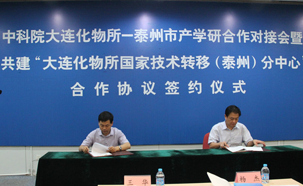 6月9日,大连化物所-泰州市产学研对接会暨我所国家技术转移(泰州)分中心签约仪式在生物楼学术报告厅举行。泰州市副市长杨杰率政府企业代表团一行六十余人访问我所并展开科技合作洽谈,我所党委副书记、副所长王华及相关研发部门负责人出席活动。
