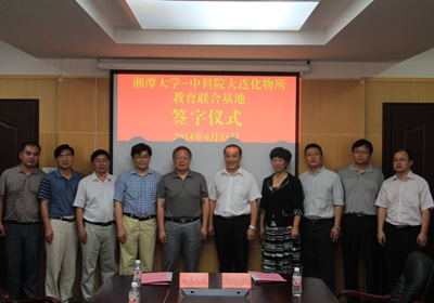 张涛一行在湘潭大学与对方就人才培养、科研交流与合作等事宜进行了洽谈,并签署“教育联合基地”协议书。湘潭大学校长黄云清,前任校长罗和安、副校级督导员张海良,教务处、研究生院、化工学院、化学学院等部门负责人参加了签约仪式。签约仪式由张海良主持。黄云清在致辞中介绍了湘潭大学的办学历史、人才培养、学科建设等情况,希望双方多联系、多交流,以此基地为平台,把双方在人才培养、学科建设、科学研究等方面的合作推向新高度。张涛表示,湘潭大学作为毛主席故乡的大学、全国首批具有硕士学位授予权的单位,办学起点很高,目前在化物所工作和学习的湘潭大学校友,表现也十分优秀,希望以此为契机,进一步促进与湘大在学生培养、科研合作等多方面的交流与探讨。