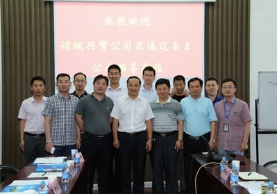 6月20日,内蒙古通辽市科技局局长张鸿福、山东诸城兴贸公司副总经理邱立忠、内蒙通辽玉王公司总经理杨猛一行访问我所,所长张涛出席会议,科技处、人事处、航天催化与新材料研究室相关人员参加活动。