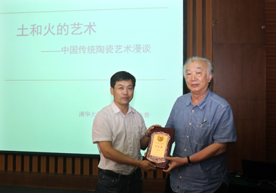 随后,来自清华大学美术学院的杨永善教授为大家做了题为“中国传统陶瓷艺术漫谈”主题报告。报告开始前,王华代表我所向杨永善颁发了文化讲坛贡献奖奖牌。