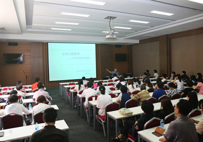 在接下来的报告中,杨永善为大家讲述了从新石器时代到清朝,中国历朝历代传统陶器和瓷器的演变过程,并详细分析了其风格特点和艺术成就。观众们不仅欣赏了中国传统陶瓷代表性作品的唯美形态,同时也深入了解了秦兵马俑、唐三彩、青花瓷等中国著名陶瓷产品的特点及其发展的历史背景。杨永善用他渊博的学识为大家展现了一幅幅精美绝伦的陶瓷作品,并介绍了各个历史时期出现的著名窑厂和主要陶瓷类别,以及由陶瓷引发出的中国各个历史时期的文化特征。他认为,陶瓷工艺可以称之为“土与火的艺术”,在制陶过程中一定要将土和火这两种元素完美结合,才能烧制出巧夺天工的陶瓷作品。杨永善将其巧妙的类比为科学研究与文化艺术之间的关系,他认为,科学和艺术是不能绝对分离的,离开了艺术的熏陶,科学研究很难迈上一个新的台阶,而只有将科学技术与文化艺术有机融合,才能碰撞出新的火花,推动科技和文化事业的共同发展。他的这一观点也与我所持续推进创新文化建设的思路十分吻合。杨永善性情真挚,语言幽默,打动了在场的每一位观众,现场不时爆发出阵阵热烈的掌声。