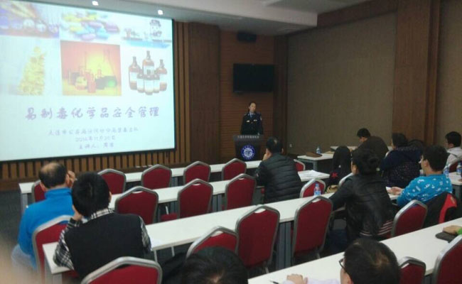培训中,周围对大连市毒品犯罪形势和易制毒化学品违法行为进行了介绍,警示大家远离毒品,更不能制毒,并且对易制毒化学品的相关法律法规以及正确采购易制毒化学品的相关程序进行了详细的讲解。
