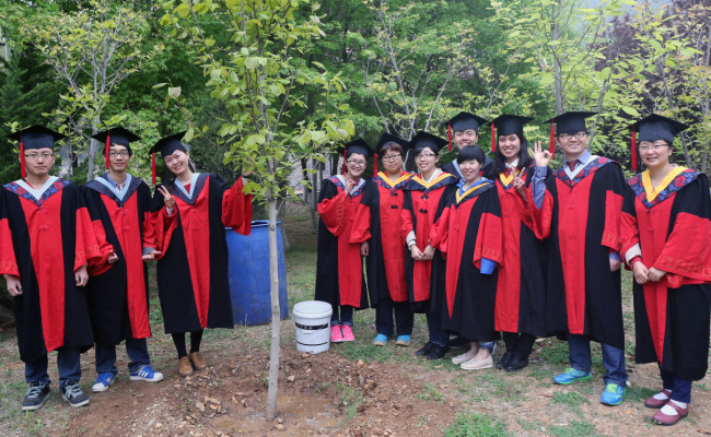 5月8日下午,我所2015届30余名毕业生参加了由研究生部和综合管理处联合举办的“博士林”植树活动。他们怀着激动、喜悦、感恩之心,在博士林里种下了两棵寄托美好愿望的玉兰树,也为自己的青春画上了美丽的一笔。初夏午后,阳光明媚,大家身着博士学位服,在美丽的博士林里合影留念,伴随着相机的“咔咔”声,即将远行的学子们灿烂的笑容定格在这美好的一刻。