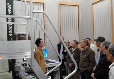 在西山湖园区电镜实验楼里,我所能源研究技术平台苗澍副研究员带领大家参观了实验楼的整体布局,并详细介绍了电镜实验楼的建筑结构、规划和已经进驻的高分辨电镜实验设备等情况。苗澍介绍说,为了满足高分辨电镜的实验需求,该实验楼在隔音、防震、恒温、除尘等方面都采取了大量的措施,以保证电镜设备的正常运行,该电镜设备已经为所里多个研究组提供了高清微观电镜图谱,为所里科研工作提供了支撑。咨询委员还就相关感兴趣的问题与苗澍进行了讨论。随后,咨询委员还饶有兴致地漫步在西山湖园区,清晨的阵雨过后,园区内空气更加清新,植被散发出阵阵清香,令人心旷神怡。