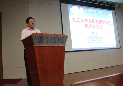 李灿从“光催化分解水制氢”这一反应入手,介绍了这一课题的科学基础以及目前的挑战问题,特别介绍了其科研团队近几年在太阳能光催化制备清洁燃料领域取得的进展。光催化分解水制氢是学术界公认的最具挑战性的课题之一,李灿表示,他之所以在近年来将主要科研精力从传统催化领域转向这一新领域,就是因为这项研究对于中国乃至全人类的发展具有非常大的意义。李灿还提倡同学们做科学研究要学会“道法自然”,从大自然中寻找科学研究的新方法、新思路,例如,太阳能光催化分解水制氢和二氧化碳还原就是模仿绿色植物光合作用的过程,可以从其机理中受到启发。他希望同学们要敢于做有挑战性的科研工作,做对人类发展有意义的事情。随后,在场的老师和同学就感兴趣的问题同李灿进行了热烈讨论。