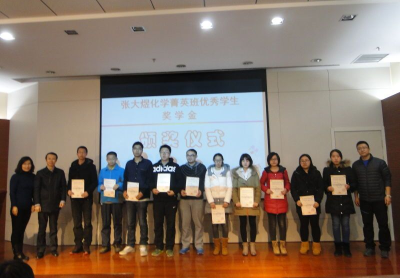 在“张大煜化学菁英班”的颁奖仪式上,大连理工大学化学学院基础实验中心主任孟长功教授肯定了“菁英班”的培养模式,感谢大连化物所在课程设置、课程教学、科研实践、学术活动等方面给予的大力支持,让学生们在本科阶段就能接触到专业领域先进的仪器设备,有机会与科研人员近距离接触,极大地拓展了学生们的视野,提升学习兴趣;感谢了大连化物所在学生生活、文体活动方面给予的无私帮助和关怀,让学生们感受到大连化物所无微不至的关怀。经过几年的培养和宣传,“张大煜化学菁英班”在国内已有一定的声誉,该班入学分数线已经进入大连理工大学2015年所有本科专业分数线前10位,希望同学们以此次“优秀学生奖学金”为契机,努力学习专业基础知识,用自己的实际行动回报社会。