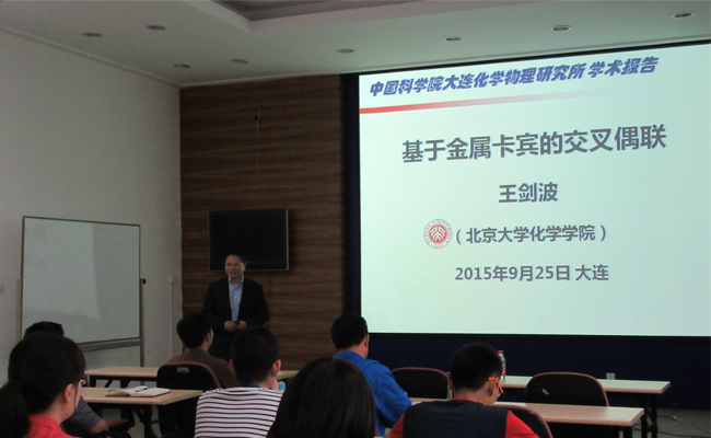 9月25日,应我所余正坤研究员邀请,北京大学王剑波教授来所进行学术交流和访问,并作题为“过渡金属催化的卡宾偶联反应”的学术报告,我所有机合成等相关领域人员到场听取了报告。