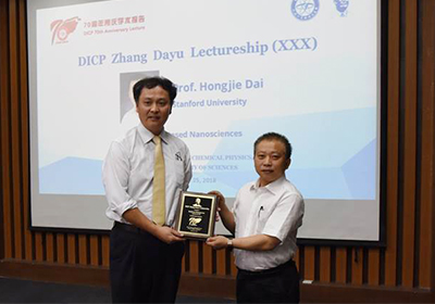 9月25日,美国国家科学院院士、美国科学与艺术学院院士、美国科学促进会会士、斯坦福大学J. G. Jackson & C. J. Wood终身荣誉教授戴宏杰应邓德会研究员邀请来我所作了题为“Carbon Based Nanosciences”的张大煜讲座。讲座由所长刘中民院士主持,我所科研人员和研究生200余人到场听取了讲座。刘中民向戴宏杰颁发了张大煜讲座证书和我所荣誉教授证书。