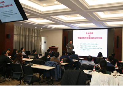 于占元作《文化自信与传统文化的当代价值》专题报告,报告了介绍了文化自信的独特作用和现实意义,强调文化自信是国家文化软实力激烈竞争的必然要求,是应对意识形态领域激烈斗争、保障国家安全的重要载体。报告深入浅出,让与会人员对中国优秀传统文化的创造性发展和转化有了进一步了解。