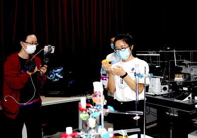 “硬核展馆来了!带你穿梭DICP70年!”场次中,主播通过对我所走过的重要历史足迹的回顾和对张大煜和张存浩两位先生的感人事迹的讲述,抒发了我所以国家需求为导向,锐意创新、协力攻坚的精神与情怀。“走近世界上最亮的极紫外光源、认识环保与食品安全的先锋卫士”场次介绍了大科学装置大连光源的背景、原理和应用,通过形象生动的互动展示了仪器分析在食品、环境、安全等领域的应用。在“闪闪荧光点亮细胞”场次,主播通过美丽神奇的荧光现象的展示,带观众走进了分子探针和荧光成像下的奇妙生命世界。在“来分子反应动力学国家重点实验室,给分子原子拍照片、拍电影”场次,通过对飞秒、纳米等概念的讲解和对飞秒实验室和扫描隧道显微镜等仪器设备的观察,让观众了解了科学家如何捕捉微观世界的反应过程。