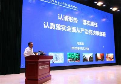 党委副书记毛志远围绕深化落实全面从严治党责任作专题报告,详细介绍了我院党建工作新形势、巡视工作问题案例及制度宣贯、科研诚信建设新要求。他要求各级党组织坚决贯彻院党组、分院分党组和所党委的党建工作部署安排,以典型案例为警钟、镜鉴,落实好各项工作制度,持续加强科研诚信建设,不断通过加强党的建设,为我所各项事业发展增添动力。