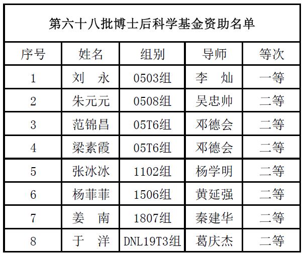 我所8名博士后获得第六十八批中国博士后科学基金面上资助