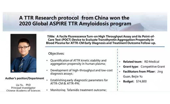 辉瑞ASPIRE Award通过国际专家函评,筛选并支持全球优秀青年科学家针对重大疾病的发病机制、治疗和预防等方面开展相关转化医学研究。我所参评的“转甲状腺素蛋白淀粉样变的早期诊断方法”为中国区今年唯一入选成果。