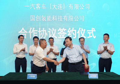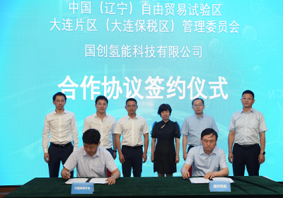 会上,国创氢能公司与大连自贸片区、一汽客车、航天凌河等五家合作伙伴签订了战略合作协议。