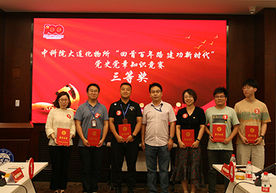根据《中科院大连化物所党史学习教育方案》安排,所党委于5月27日起在全所范围内开展“回首百年路 建功新时代”党史党章知识竞赛活动,活动分为线上比赛和现场比赛两个阶段。在线上比赛阶段,累计有400余人参加答题活动,综合各党支部参赛答题情况,排序靠前的10支队伍参加了今天的比赛。整个知识竞赛活动中寓教于乐,各党支部全面发动党员、团员和党外人士参加,以赛促学、以学鼓劲,掀起了我所党史学习教育活动的热潮,为“学党史、悟思想、办实事、开新局”奠定了良好的思想基础。(文/孙丰翔 图/赵文佳)