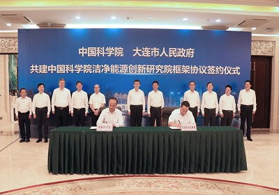 调研期间,阴和俊、张涛和胡玉亭、陈绍旺出席中国科学院与大连市人民政府共建中科院洁净能源创新研究院框架协议签约仪式。阴和俊、张涛对大连市委、市政府对中科院和我所的支持表示感谢,胡玉亭、陈绍旺表示中科院洁净能源创新研究院是英歌石科学城的核心载体,大连市委、市政府将全力做好服务保障。张涛、陈绍旺分别代表中科院和大连市政府签署《共建中国科学院洁净能源创新研究院框架协议》;骆东升、刘中民分别代表大连市政府和大连化物所签署《共建中国科学院洁净能源创新研究院合作协议》。根据协议,双方将按照“总体规划、分步实施,多元投入、共同建设,创新引领、集聚发展”的原则,在大连建设“一总部、二基地、三中心”;双方将重点把洁净能源创新研究院(总部)作为标志性起点项目,实现总部建筑面积约60万平方米,打造英歌石科学城的核心功能区。