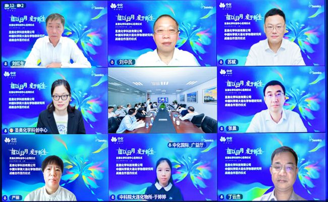 9月13日,圣奥化学科技有限公司(以下简称“圣奥化学”)与我所战略合作协议签约仪式在线上举行。中化国际(控股)股份有限公司(以下简称“中化国际”)总经理、圣奥化学董事长刘红生,中化国际副总经理、圣奥化学CEO苏斌,中化国际和圣奥化学相关负责人;我所所长刘中民、科研及职能部门相关人员参加会议。圣奥化学研发总监郭湘云与我所知识产权与成果转化处处长张晨代表双方签署战略合作协议。