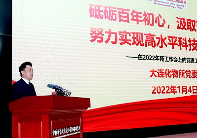 所长刘中民代表所班子作了题为《踔厉奋发扎实推进十四五规划,不负时代努力承担国家责使命》的报告,总结了2021年主要工作进展,介绍了洁净能源创新研究院建设情况,并提出了2022年计划重点推进的工作。