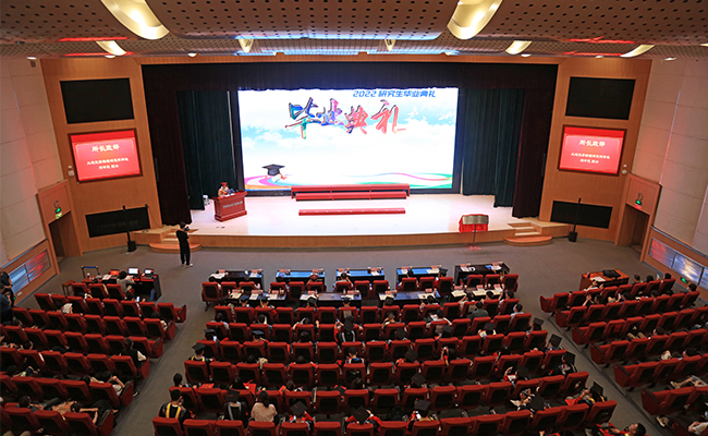 毕业典礼在激昂雄壮的国歌声中拉开了帷幕。所学位评定委员会主任杨学明宣读了我所2022年研究生学位授予及拟授予名单。我所9名学位评定委员会委员为参加典礼的毕业研究生代表颁发了毕业证书并扶正流苏。