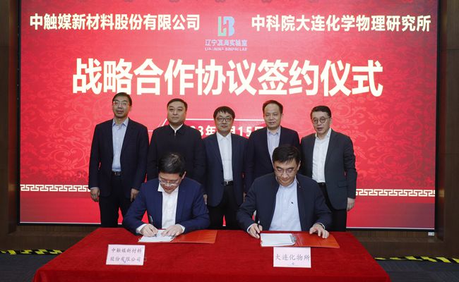 2月15日,中触媒新材料股份有限公司(以下简称“中触媒”)与我所战略合作协议签约仪式在我所举行。辽宁省科学技术厅副厅长王胜秋,大连市科学技术局局长原驰,中触媒董事长李进、总裁项仁勇,省科技厅、市科技局、中触媒相关人员;我所副所长李先锋、职能部门相关人员参加签约活动。项仁勇与我所知识产权与成果转化处处长张晨分别代表双方签订战略合作协议。