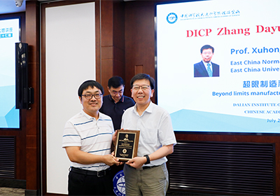 7月23日,华东师范大学校长、党委副书记钱旭红院士应邀在我所交流中心作了题为“超限制造和改变思维”的第37期张大煜讲座报告。我所副所长李先锋、黄延强,以及科研人员、研究生等100余人参加了报告会。会上,李先锋向钱旭红颁发了张大煜讲座证书和我所荣誉教授证书。