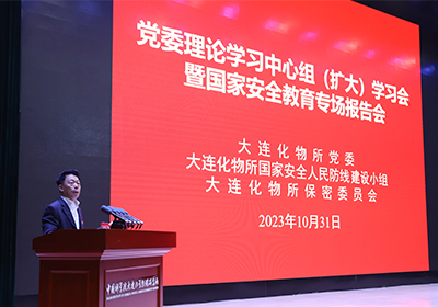 10月31日,我所召开党委理论学习中心组(扩大)学习会暨国家安全教育专场报告会。大连市国家安全部门有关负责人,在所党委委员、所国家安全人民防线建设小组成员、所保密委员会成员参加本次活动。大连理工大学外国语学院崔戈教授受邀作专题报告,党委书记金玉奇主持报告会并讲话。