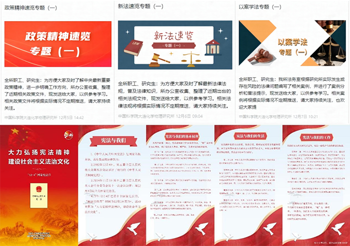 12月4日,“政策法规”版块正式在所网站上线。该板块共包括三个子模块,即“政策精神速览”“新法速览”和“以案学法”,旨在收集并实时更新与研究所工作相关的中央最新重要政策精神、法律法规以及通过案例普及法律知识,做好普法提示。为提升宣传效果,相关内容同步通过我所专属App进行推送,推送当天,每个专题参与人数均在400人以上。