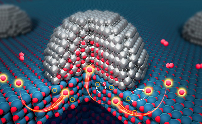 我所首次观测到金属/载体界面的体相氧溢流