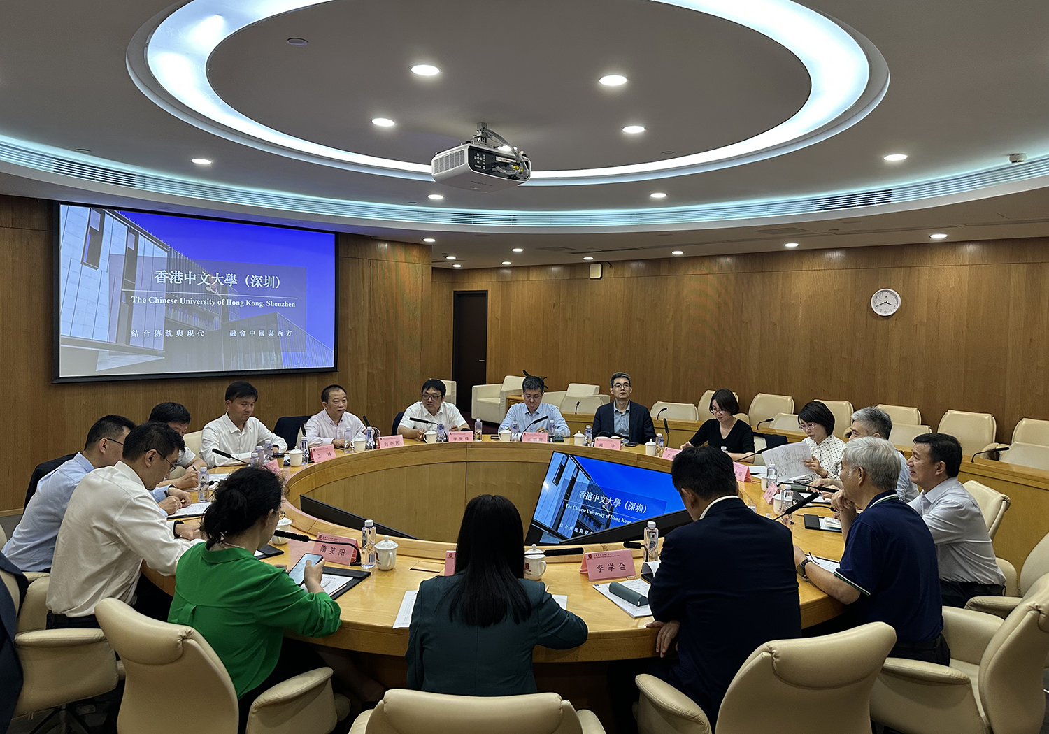 4月9日至10日,刘中民带队赴深圳先后调研香港中文大学(深圳)(以下简称“港中大(深圳)”)与南方科技大学(以下简称“南科大”)。在港中大(深圳),刘中民一行实地参观了学校图书馆、祥波书院。座谈会上,港中大(深圳)副校长唐本忠围绕学校特色工作进行了介绍,希望双方进一步深化交流、加强科技与人才合作;协理副校长李学金围绕学校概况、人才队伍、科研进展和学生培养等方面进行了介绍;理工学院、创新创业处、研究生院、学术交流处相关负责人分别围绕学院建设、产业化工作、学生教育、国际交流进行了介绍。刘中民充分肯定港中大(深圳)在人才培养、国际合作、成果转化等方面取得的成效,期待依托深圳区域创新优势,双方在学生培养、科技合作、人才引进、人工智能、国际交流等方面开展务实合作。